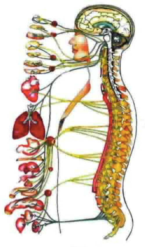 attraverso i nervi spinali che fuoriescono dalla colonna collega il